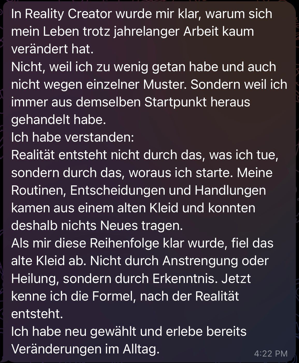Im Reality Creator mache ich dieses Gesetz so klar, dass grosse Realitätssprünge nicht mehr Ausnahme sind, sondern für alle machbar werden.