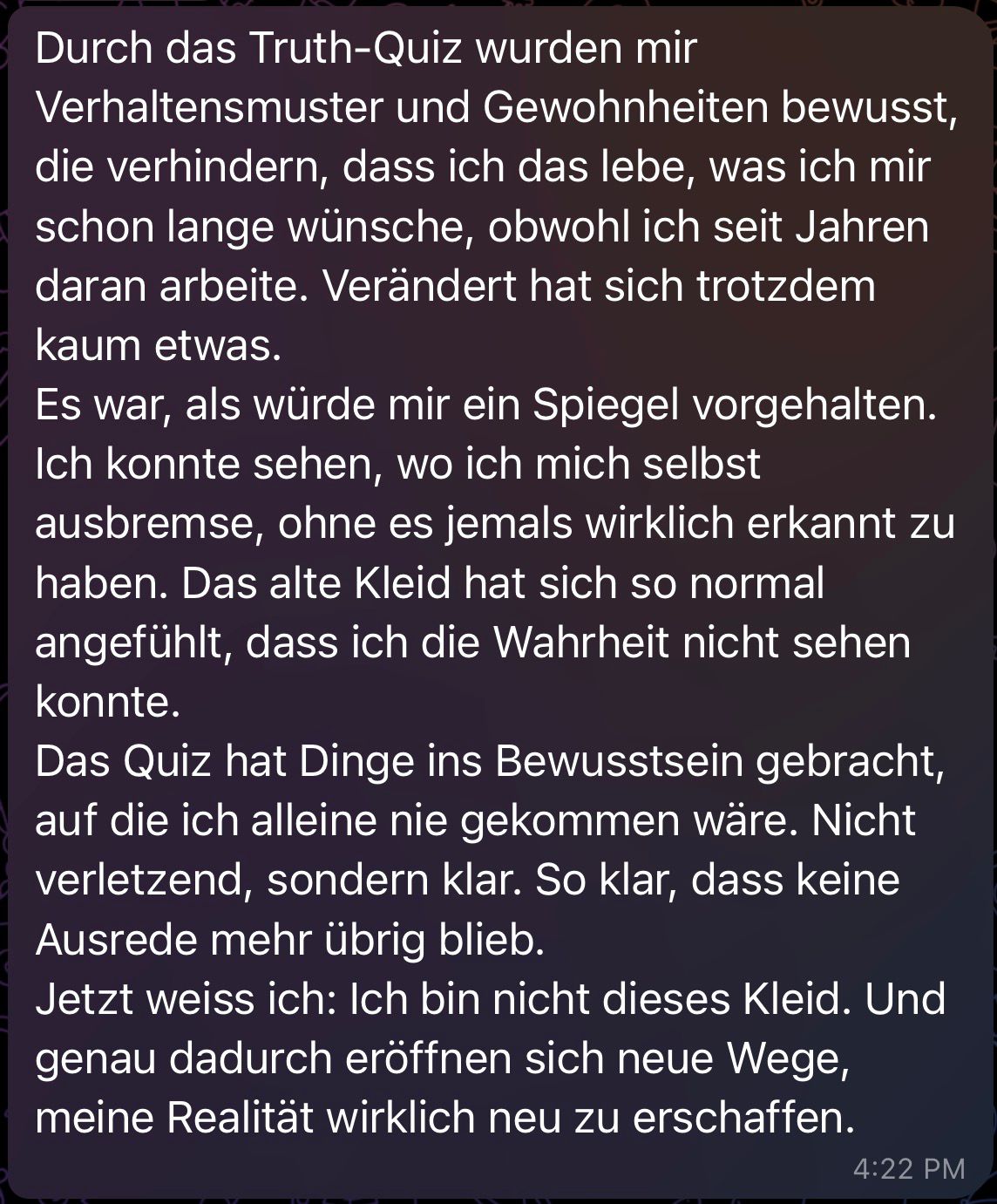 Es ist ein präziser Blick auf die Wahrheit und die Macht deines Verhaltens.